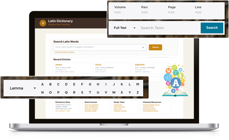 Latin Dictionary helps scholars and students find precise meanings and definitions of Latin words—quickly, accurately, and without hassle.